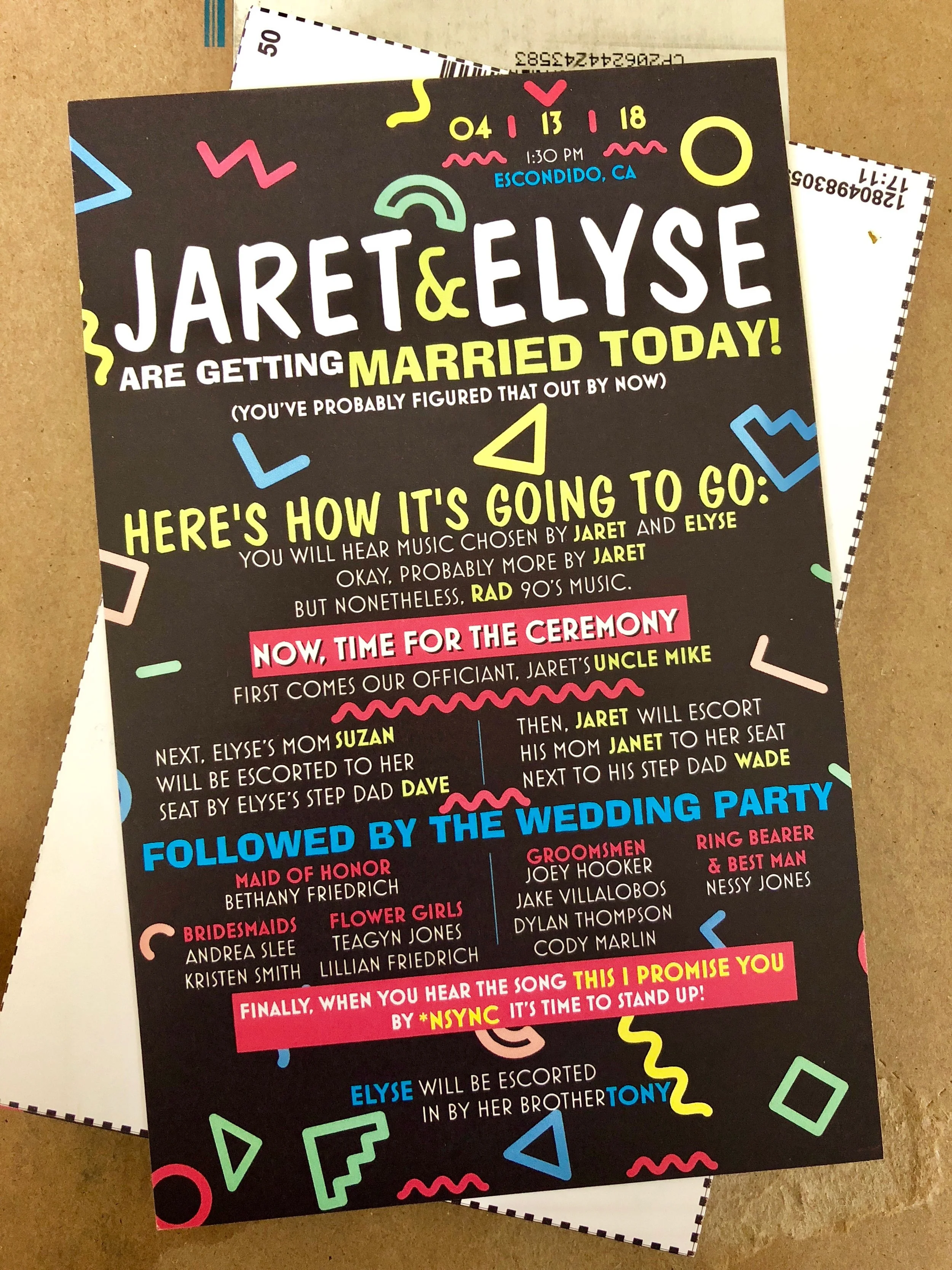 This wedding was a blast from the past and one I will use to reference for the creativity I can bring to my client's vision. Thank you Jaret and Elyse for giving me the platorm to make your 90s wedding such a hit!